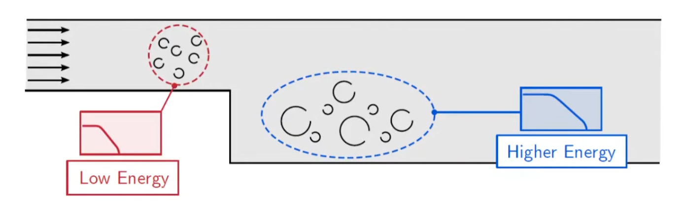 The below diagram shows the relation between the size of the eddy(wavenumber) and the kinetic energy density.